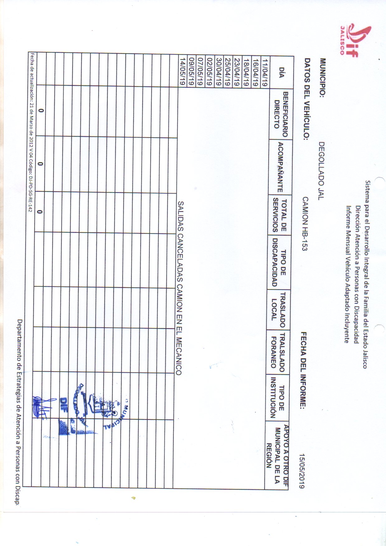 INFORME MENSUAL VEHICHULOS MAYO 2019